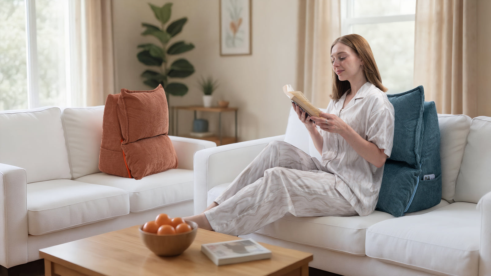 Triangular headboard pillow supports sitting and sleeping polyester fill with side pocket for bed TEXSTEAD