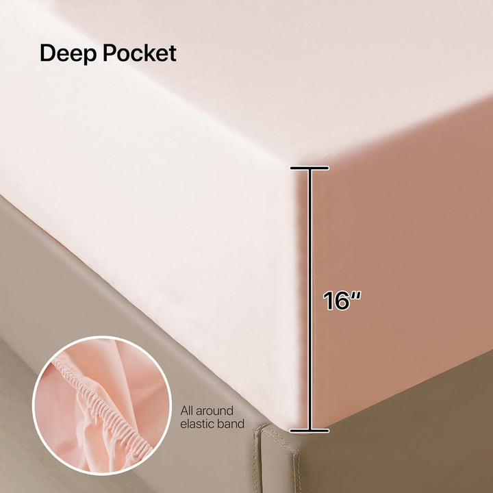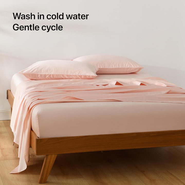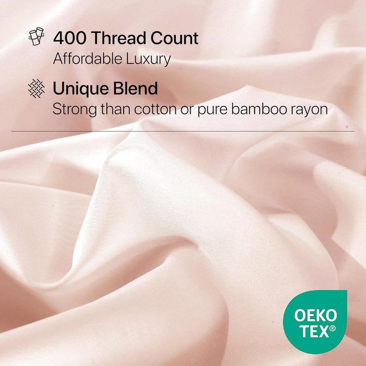 Lilac Pink Bed Sheets Set Rayon Derived from Bamboo & Organic Cotton Blend, Silky Soft Cooling Sheets with Deep Pockets Hotel Luxury Bedding Sheets & Pillowcases