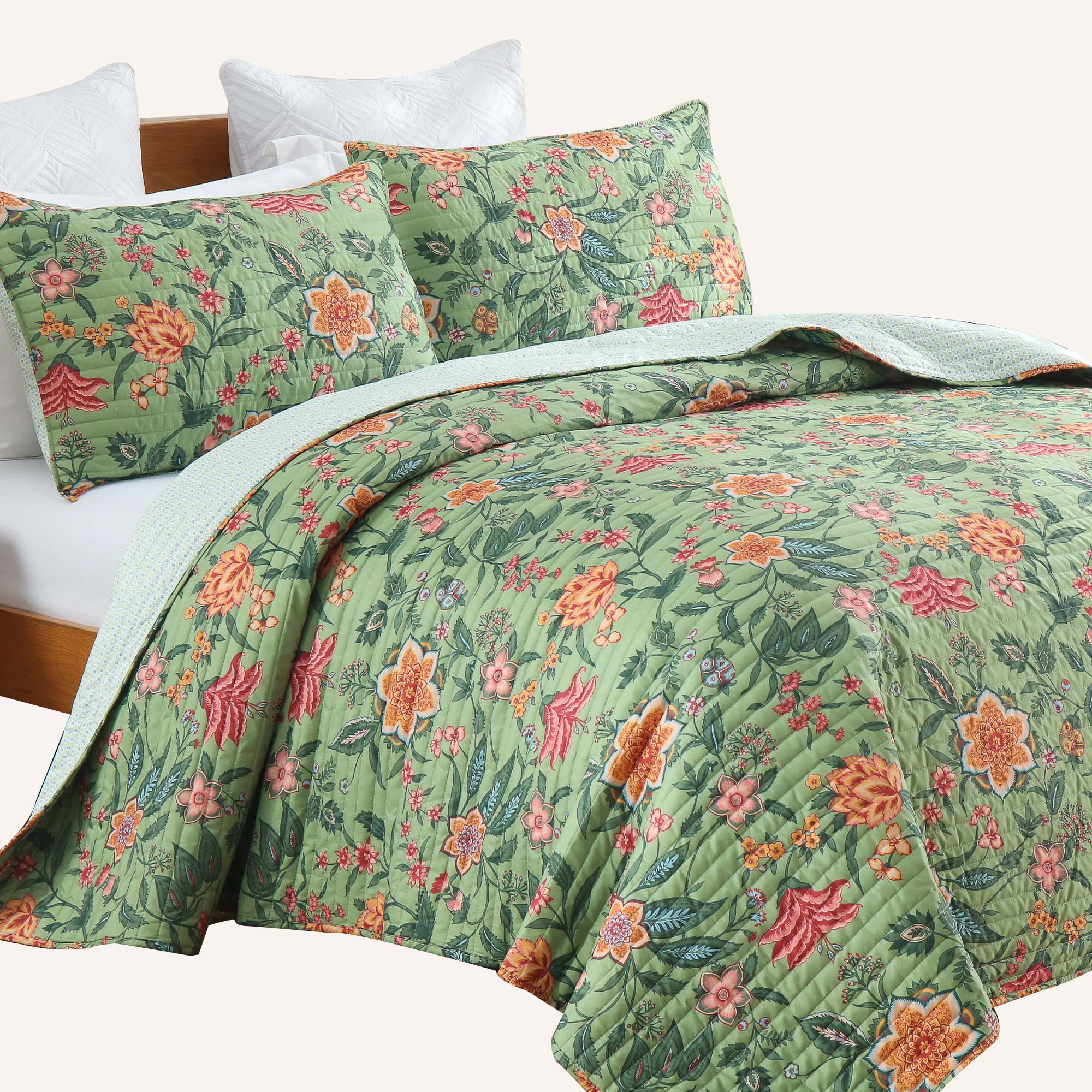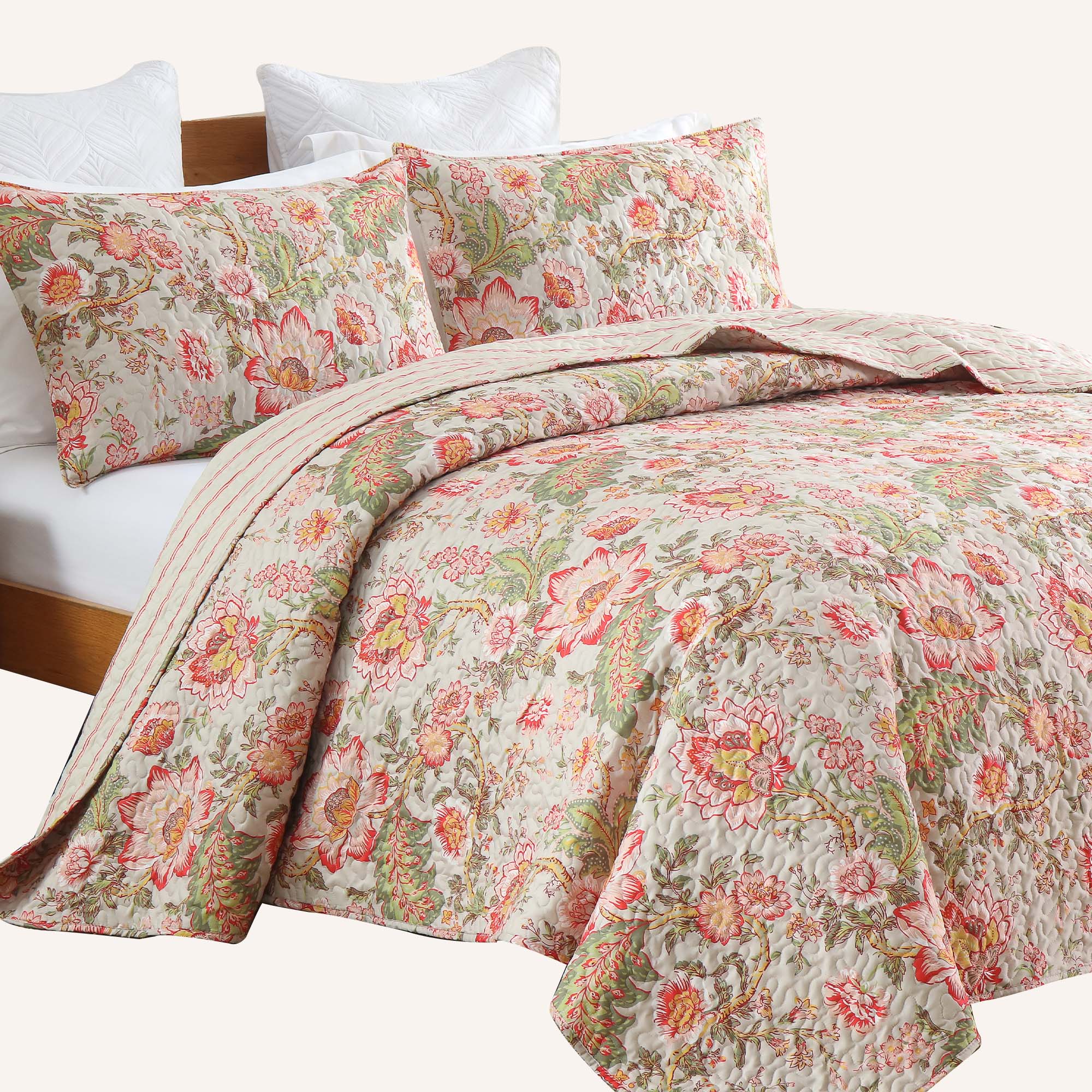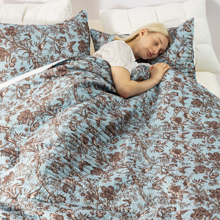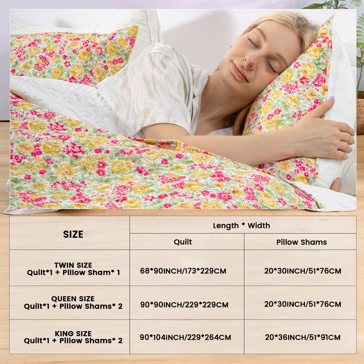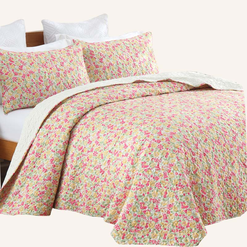 Floral quilt set soft lightweight polyester bedding with pillowcases multi size for bedroom TEXSTEAD