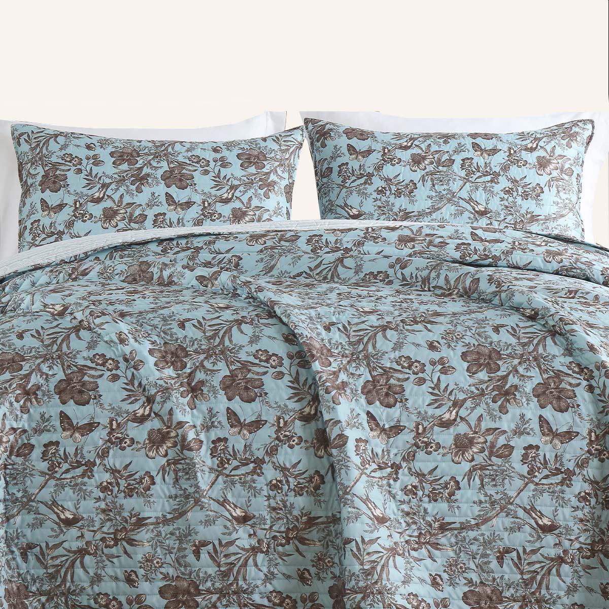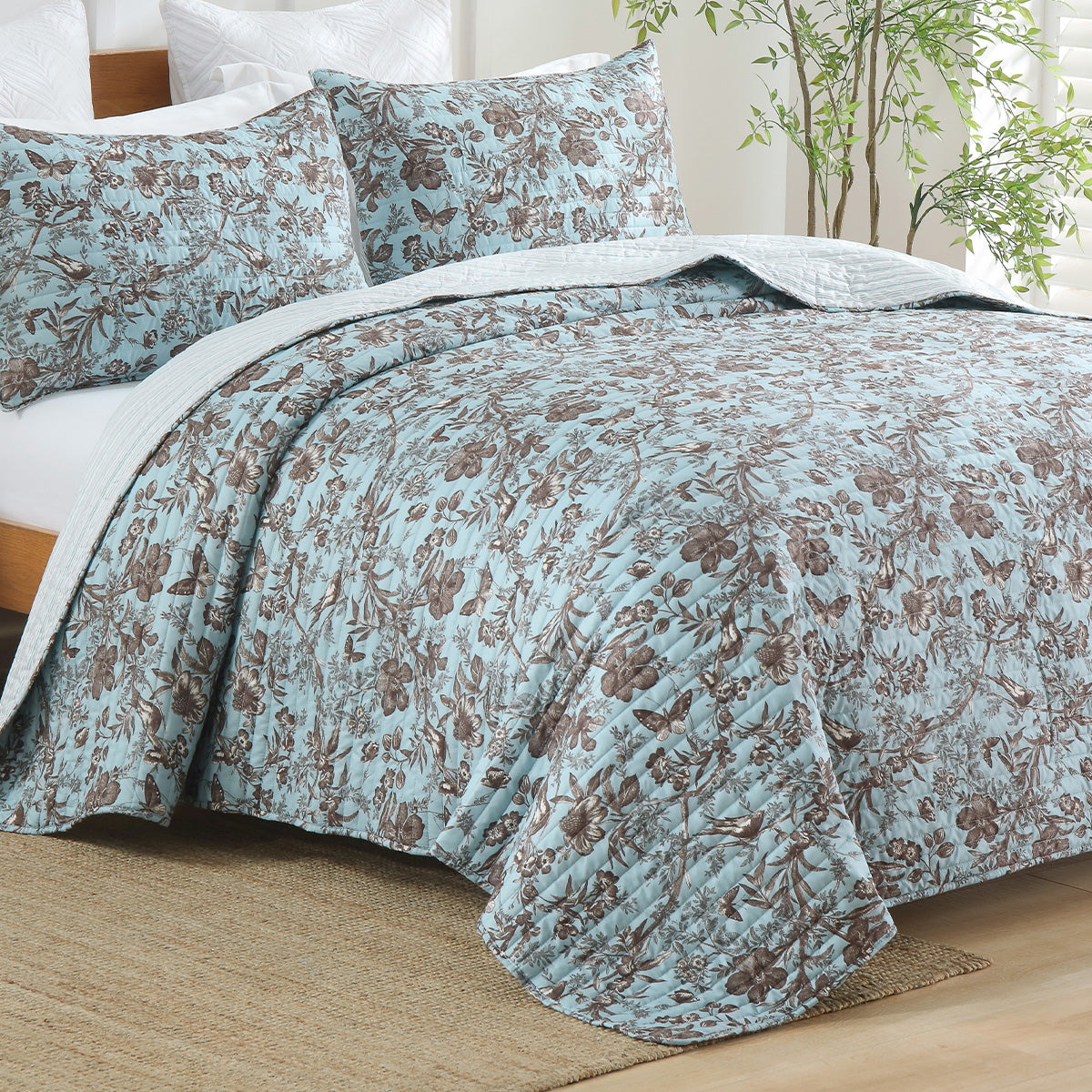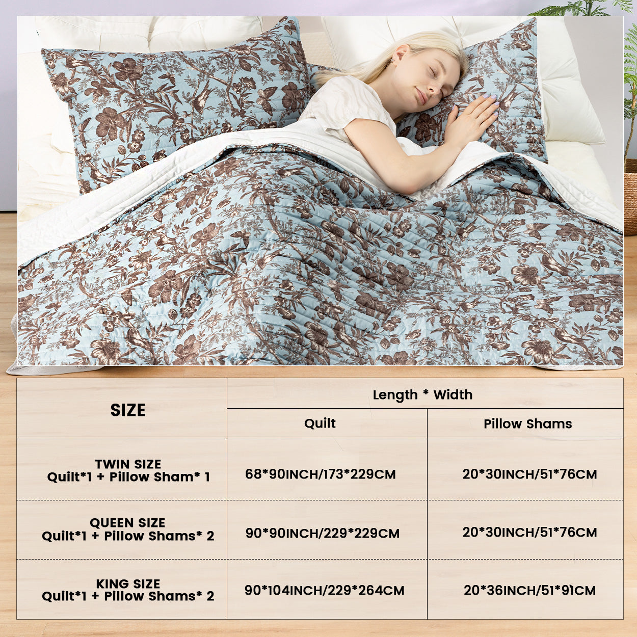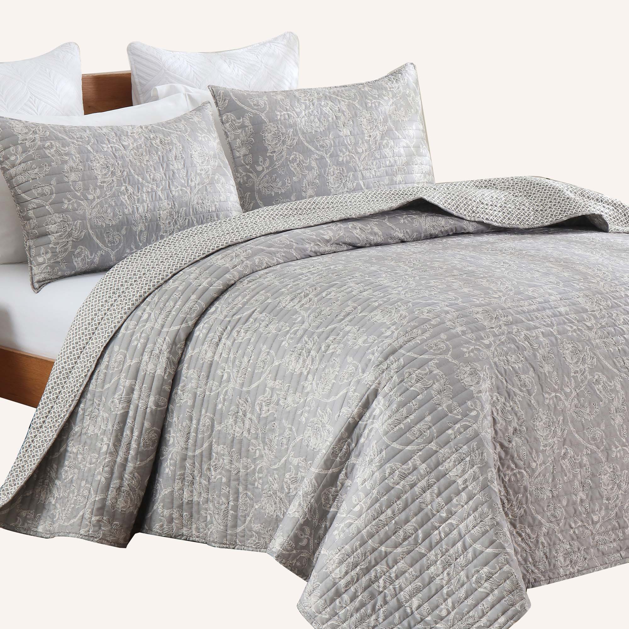 Floral quilt set soft lightweight polyester bedding with pillowcases multi size for bedroom TEXSTEAD