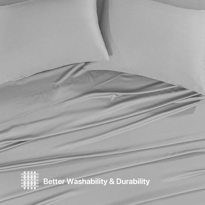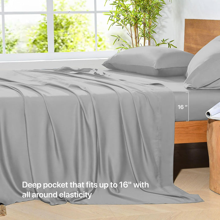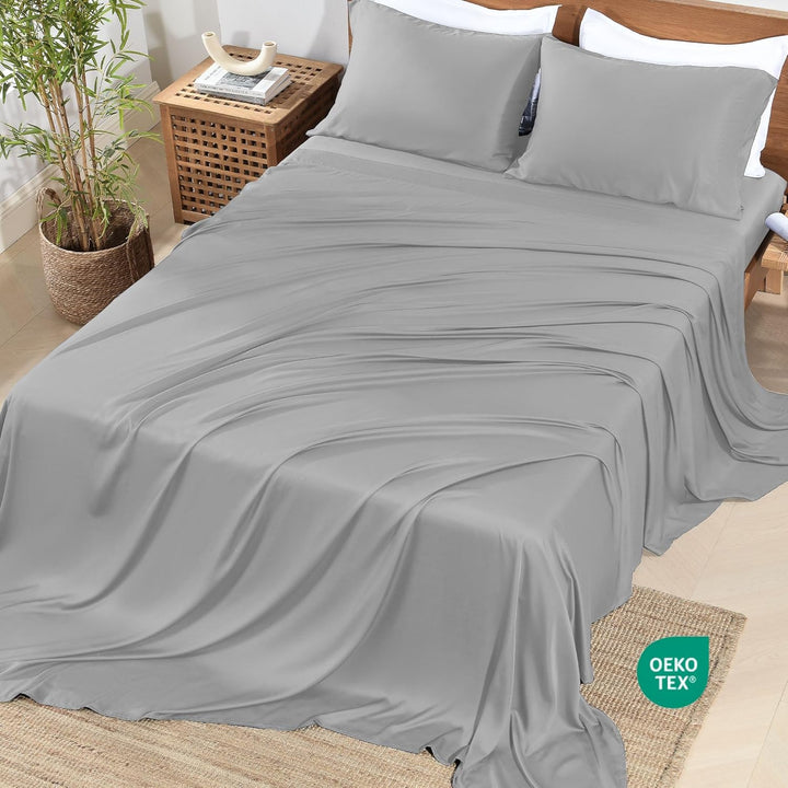 LightGray Cooling Sheets Set Full Size Rayon Derived from Bamboo Bed Sheets Soft Breathable